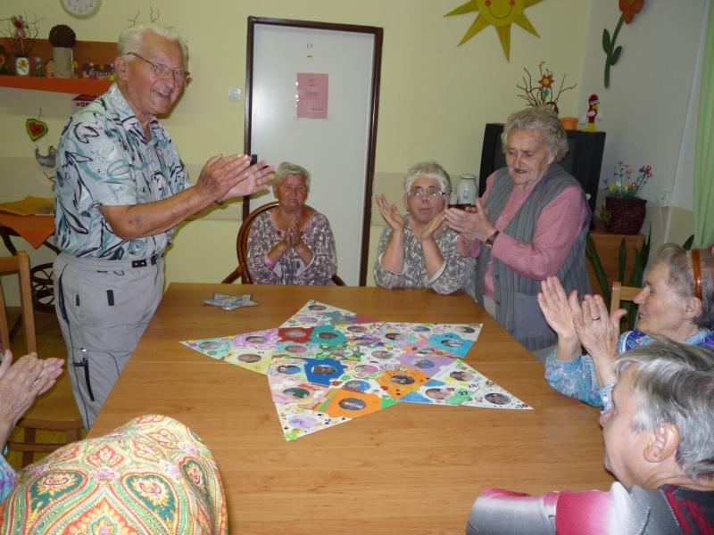 V lete navštívili naše zariadenia lektorky anglického jazyka zo štátov Minnesota, North Dakota a Wisconsin. Je to už siedmy rok, keď si nájdu čas, aby svojou prítomnosťou spríjemnili chvíle našim obyvateľom. Tí ich privítali spevom. Hoci naša návšteva slovám piesní nerozumela, s veľkou radosťou im do taktu zatlieskala. Aká šťastná bola mladá Američanka, keď sa jej s pomocou našich obyvateľov podarilo utkať pár riadkov koberca.