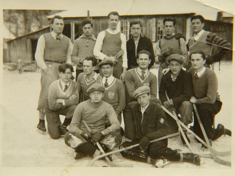 Snímka vznikla na vtedajšom klzisku, ktoré sa nachádzalo na mieste terajšieho futbalového ihriska, kdesi za telocvičňou. V tomto období bol môj otec študentom Filozofickej fakulty Karlovej Univerzity v Prahe. Tu okrem iného navštevoval aj hokejový a krasokorčuliarsky kurz a hral hokej za študentov vysokej školy. V Kremnici zozbieral svojich priateľov, všestranných športovcov a tak preniesol tento šport do nášho mesta. Hokeju sa venoval aj v období, keď bol riaditeľom tunajšieho gymnázia. Spomínal, že vtedy mávali najväčšiu návštevnosť, lebo študenti gymnázia považovali za svoju povinnosť prísť povzbudiť svojho riaditeľa a spolužiakov, ktorý spolu hrali za Kremnicu.