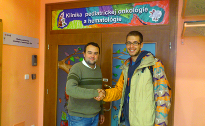 Matej odovzdal dar Ľubošovi Moravčíkovi zo Svetielka nádeje. Foto archív MT