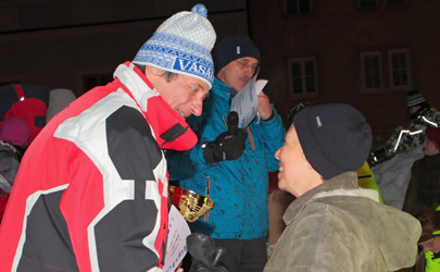 Primátorka Kremnice Zuzana Balážová gratuluje Jánovi Bílešovi k 2. miestu pri slávnostnom vyhlasovaní víťazov. Foto: Ivan Čillík