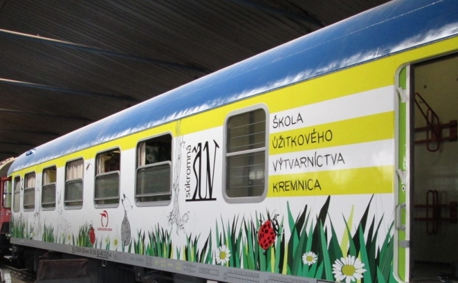 Sedieť na pohodlnej novej sedačke, hrať stolové hry, ale zároveň sa cítiť ako uprostred lesa s lienkou či vážkou nad hlavou a s veveričkou na strome – to sa vďaka Súkromnej škole úžitkového výtvarníctva stalo súčasťou cestovania vlakom na linke Zvolen – Žilina.