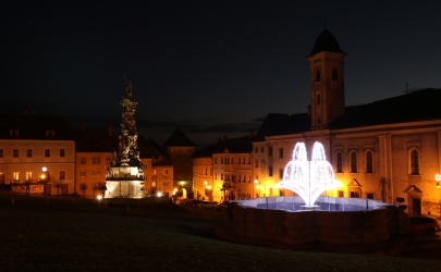 Vianočná výzdoba barokovej fontány na historickom námestí Kremnice je novou atrakciou. Imituje padajúcu vodu.